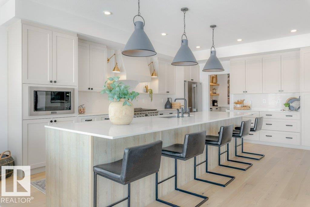 Stunning custom-built estate home in Riverside, St. Albert offering 2,633 sq. ft. of beautifully finished living space. This move-in ready home features 10’ ceilings, gorgeous engineered hardwood floors and a bright great room with stunning stone gas fireplace. The chef’s kitchen is designed for entertaining with a 13-ft island, farmhouse faucet, quartz backsplash, 6-burner gas stove with custom shiplap feature wall and a fully equipped butler’s pantry with sink, bar fridge and built-in shelving. A striking...