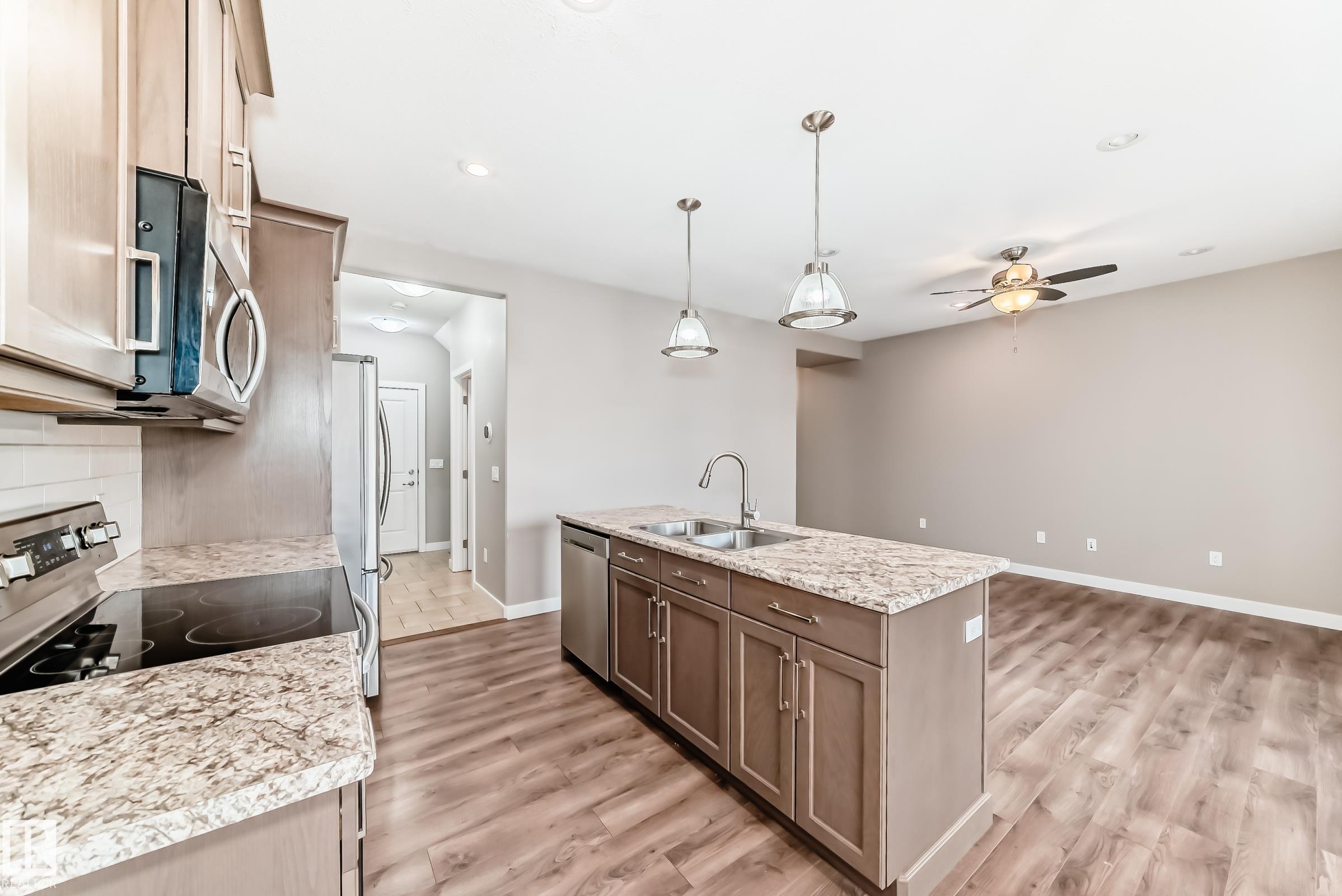 Above average townhouse, low condo fee! Located on the west end of Leduc ,close to shopping in Leduc Common. This 3 bedroom 2.5 bath home with double attached garage, an open concept main floor plan that offers a great room, kitchen and dining area as well as 2 piece bathroom. Vinyl plank flooring, stainless steel appliances are included. The upper level master bedroom has 4 piece en-suite and walk-in closet. Two additional bedrooms, 4 piece bathroom and laundry room complete this level. The basement is fu...