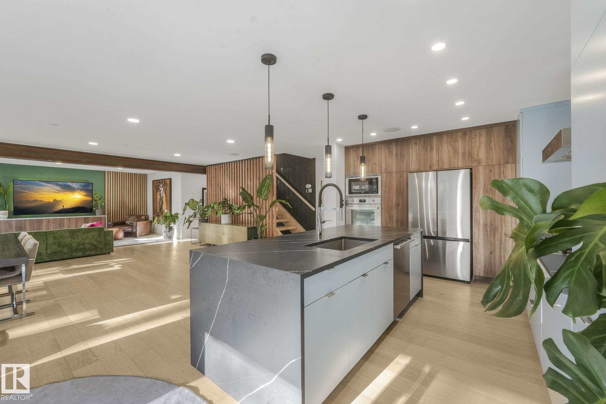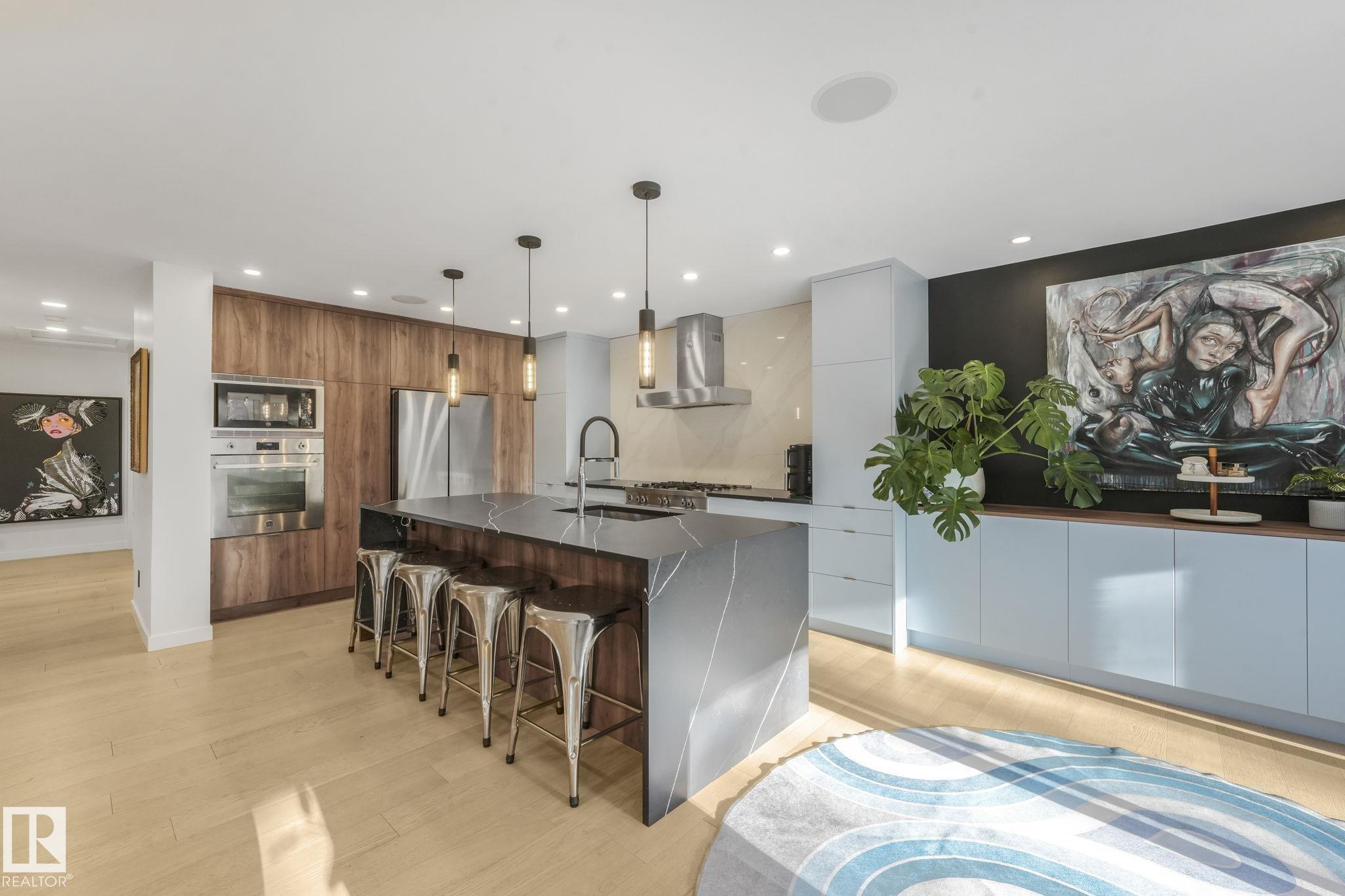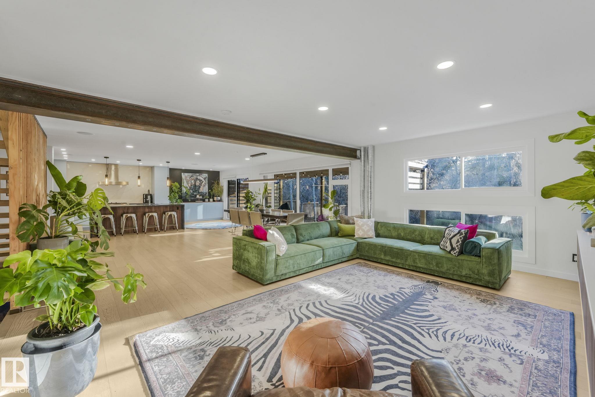 Beautiful South facing Ravine lot on MacKenzie Drive in central family friendly Crestwood, stunning one and a half story, Architecturally designed contemporary elegance with an open layout floor plan, fully professionally renovated modern dream home. The Kitchen and Dining area floor-to-ceiling windows flood the space with natural light, living room, all face the private south ravine, featured by a covered deck. The spectacular kitchen with a massive quartz island compliments the quartz countertops & backsp...