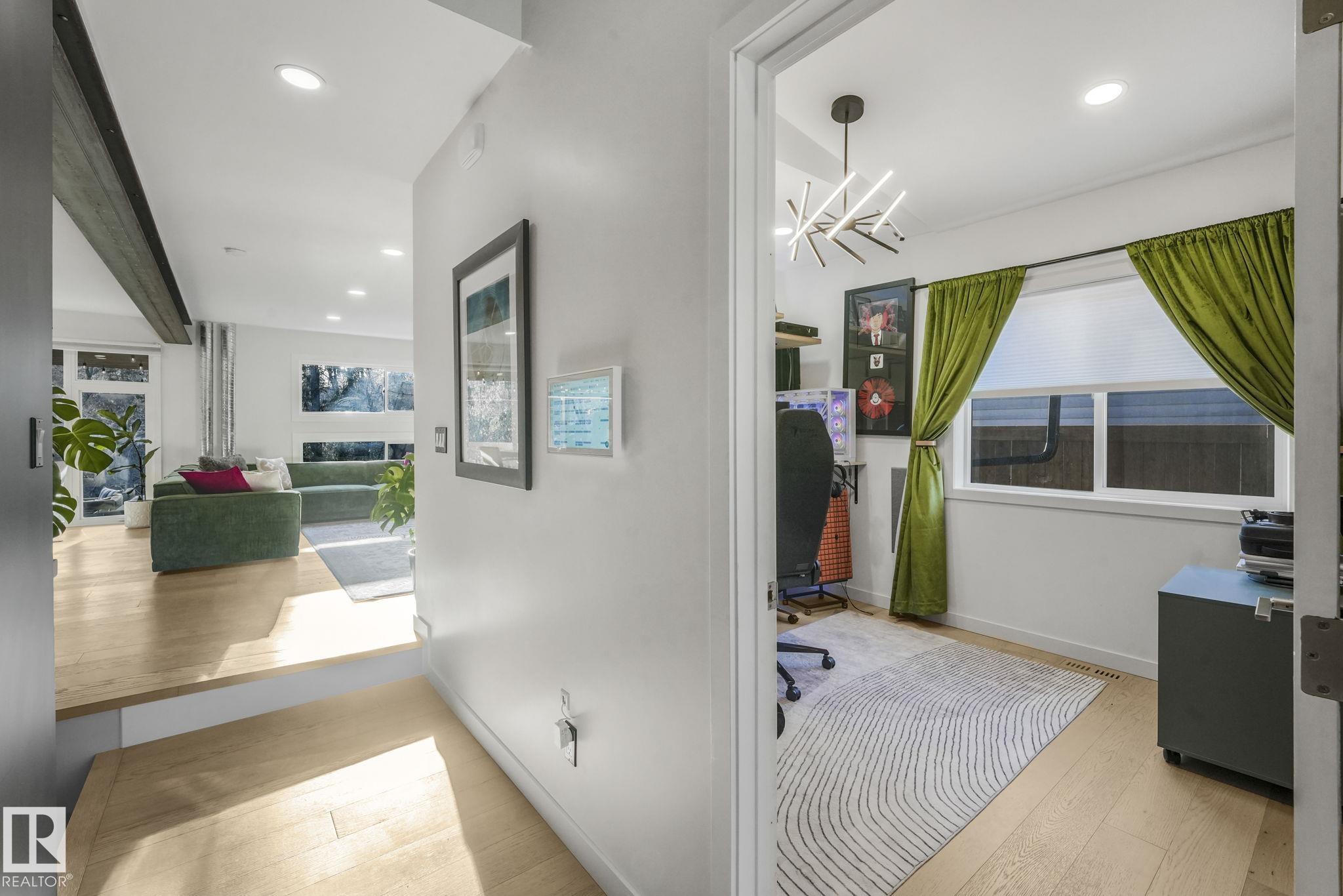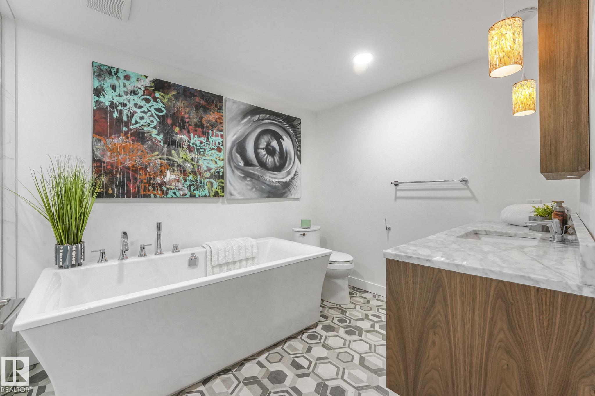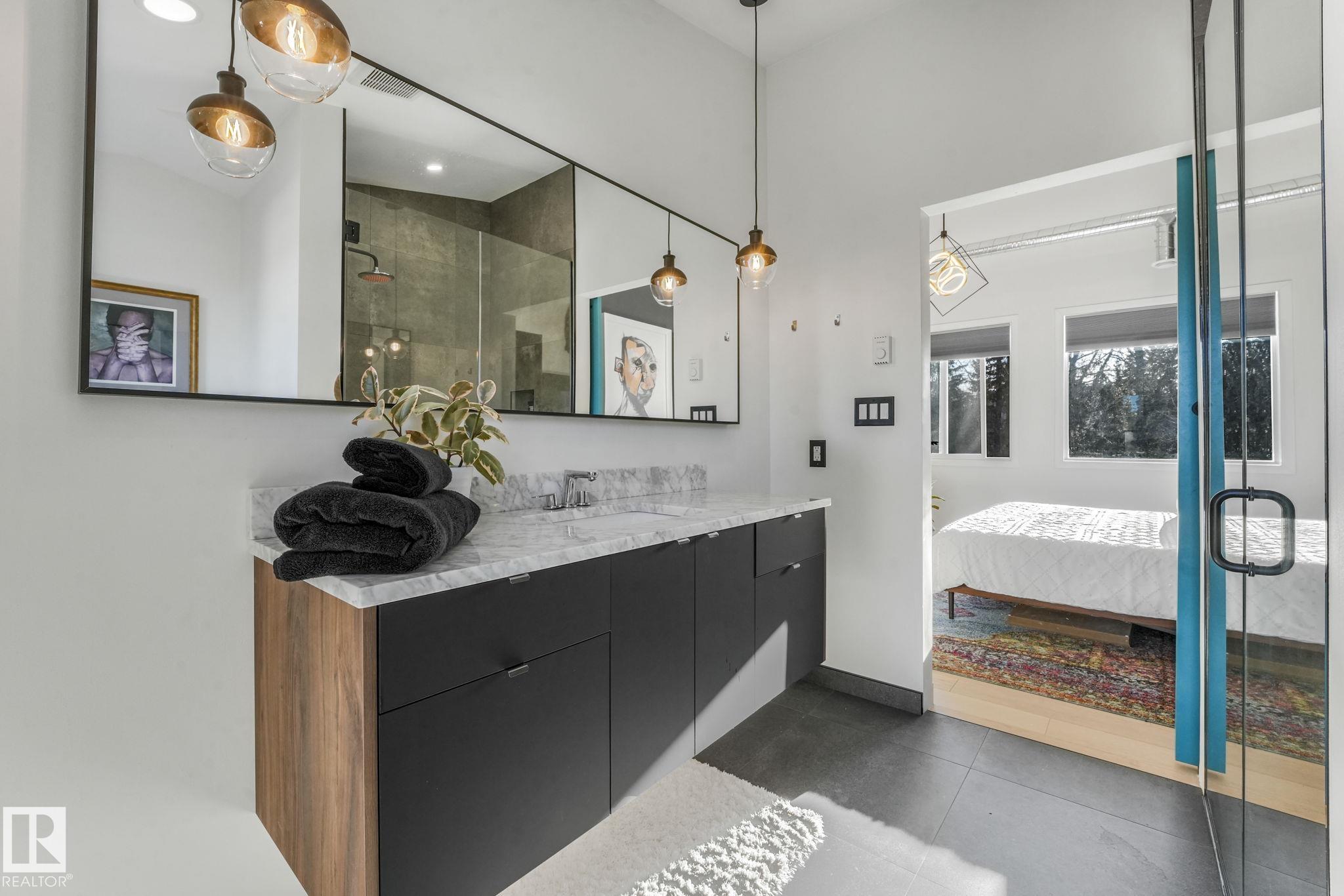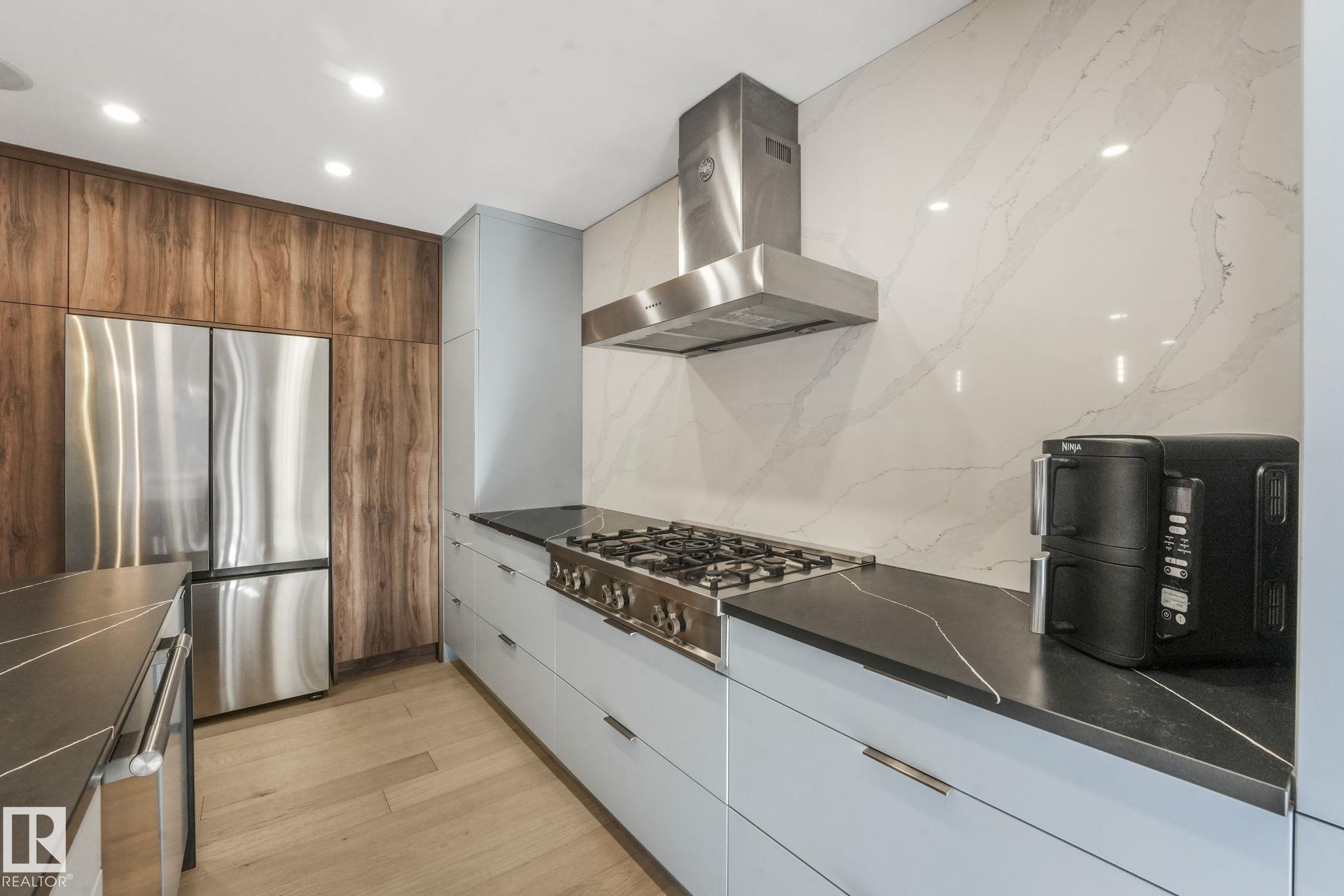 Beautiful South facing Ravine lot on MacKenzie Drive in central family friendly Crestwood, stunning one and a half story, Architecturally designed contemporary elegance with an open layout floor plan, fully professionally renovated modern dream home. The Kitchen and Dining area floor-to-ceiling windows flood the space with natural light, living room, all face the private south ravine, featured by a covered deck. The spectacular kitchen with a massive quartz island compliments the quartz countertops & backsp...