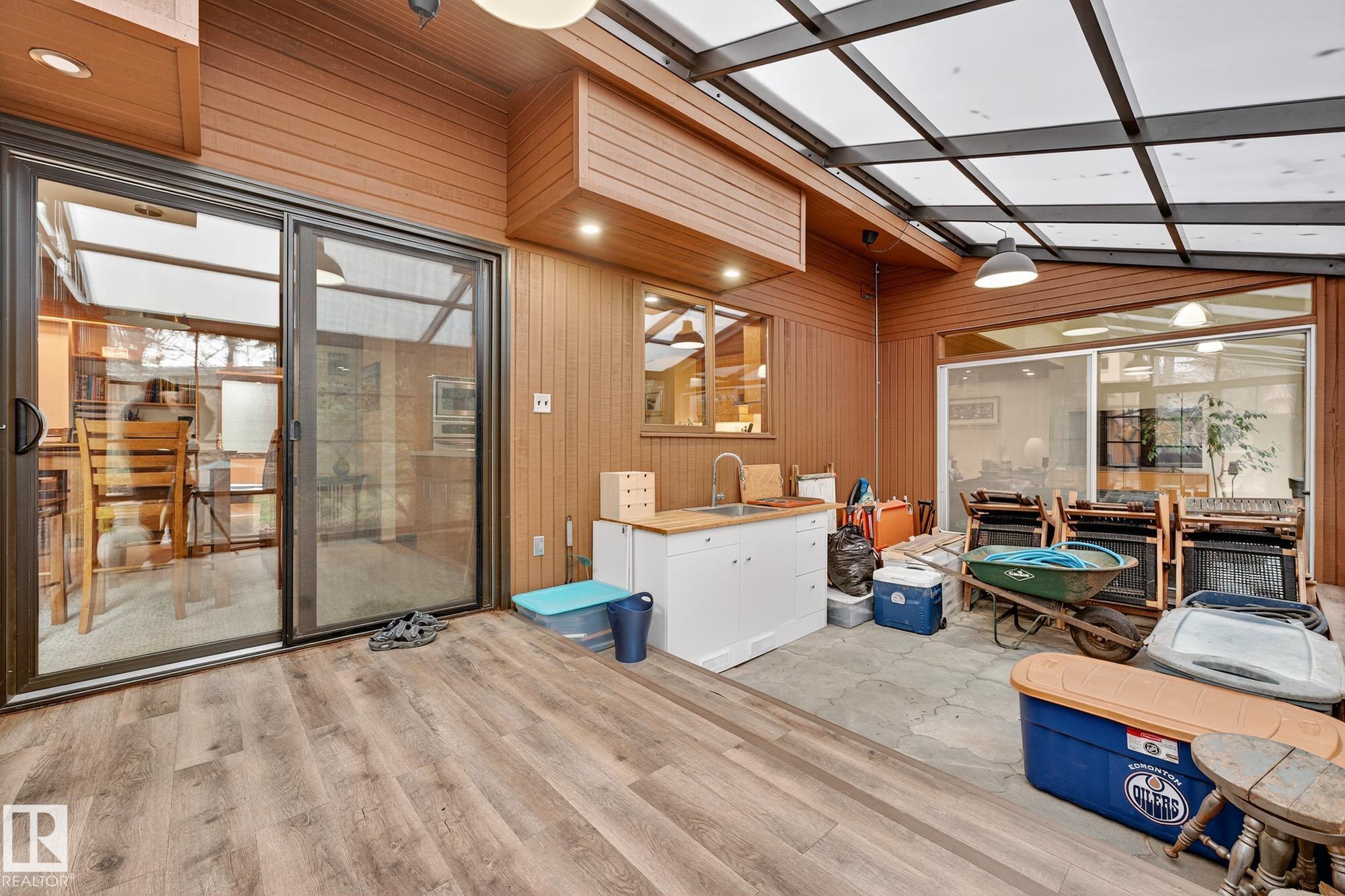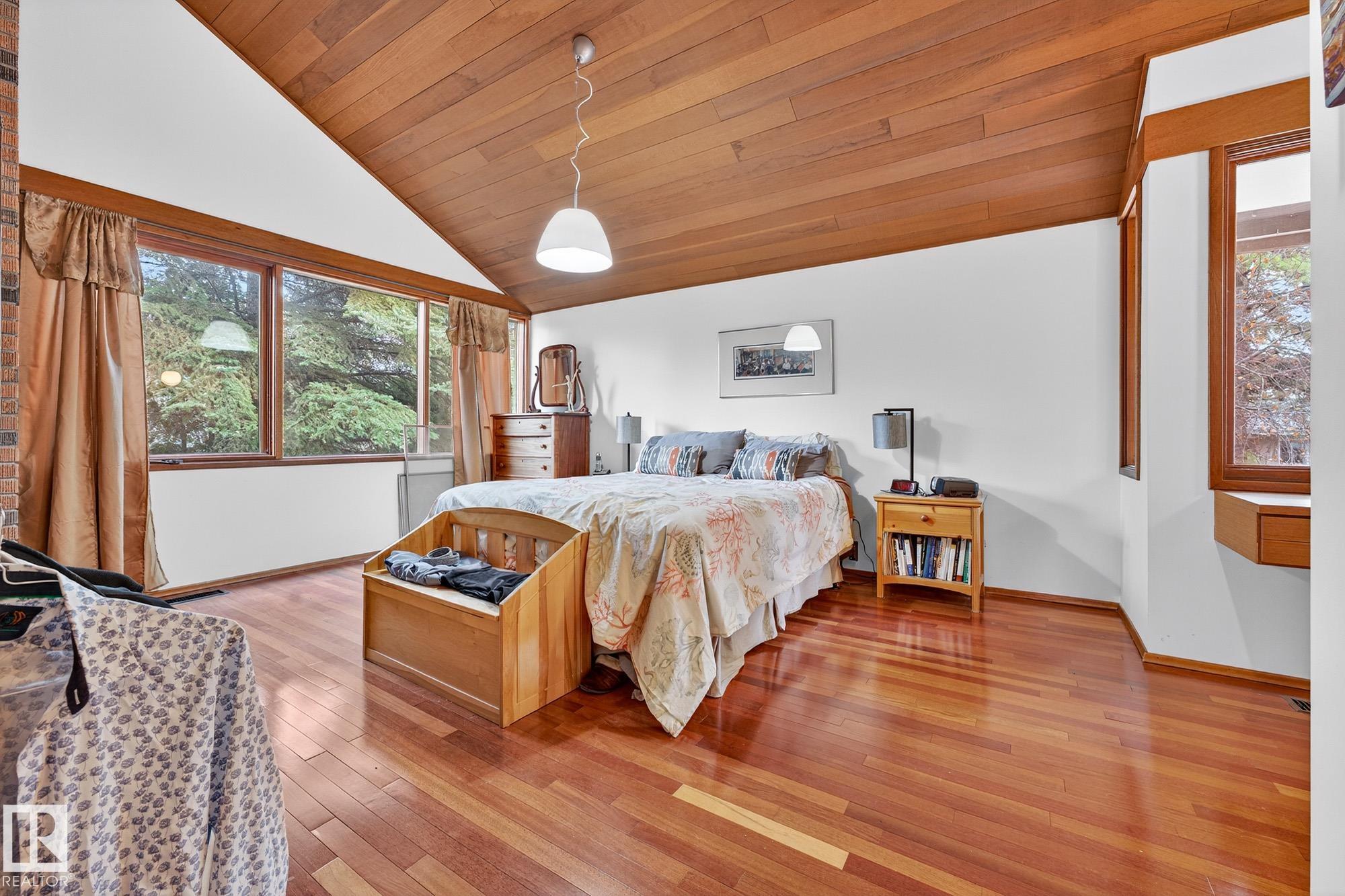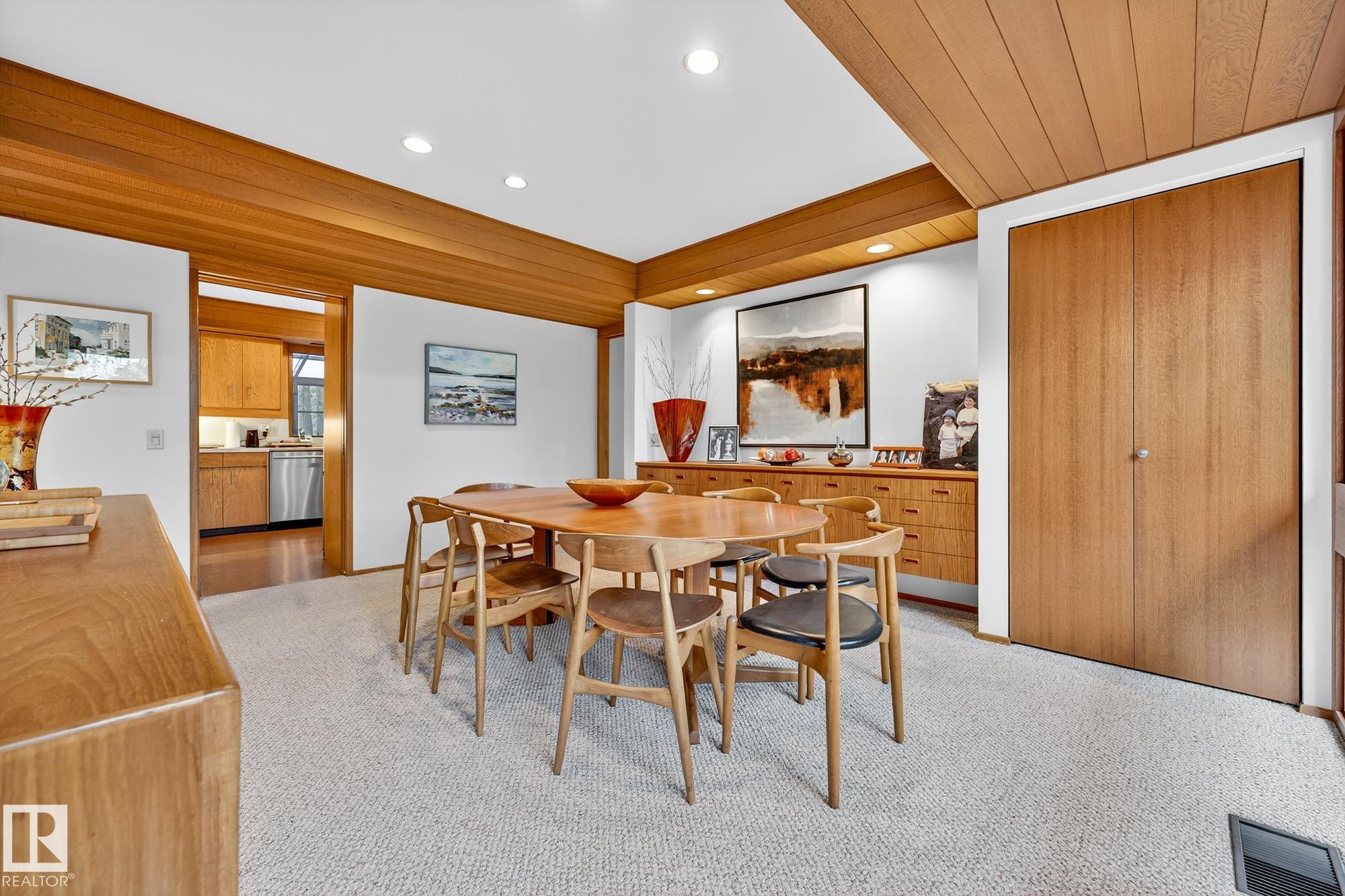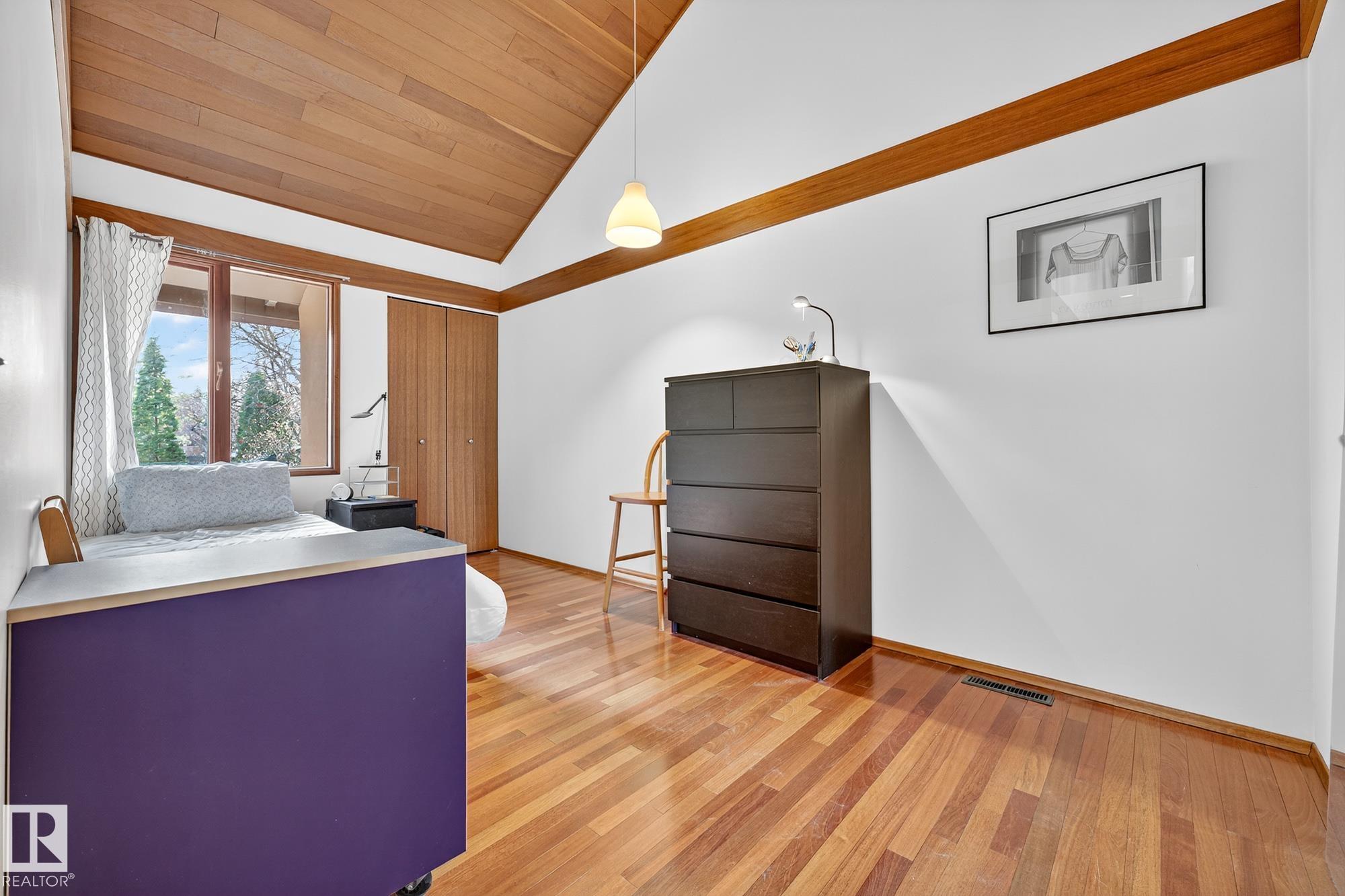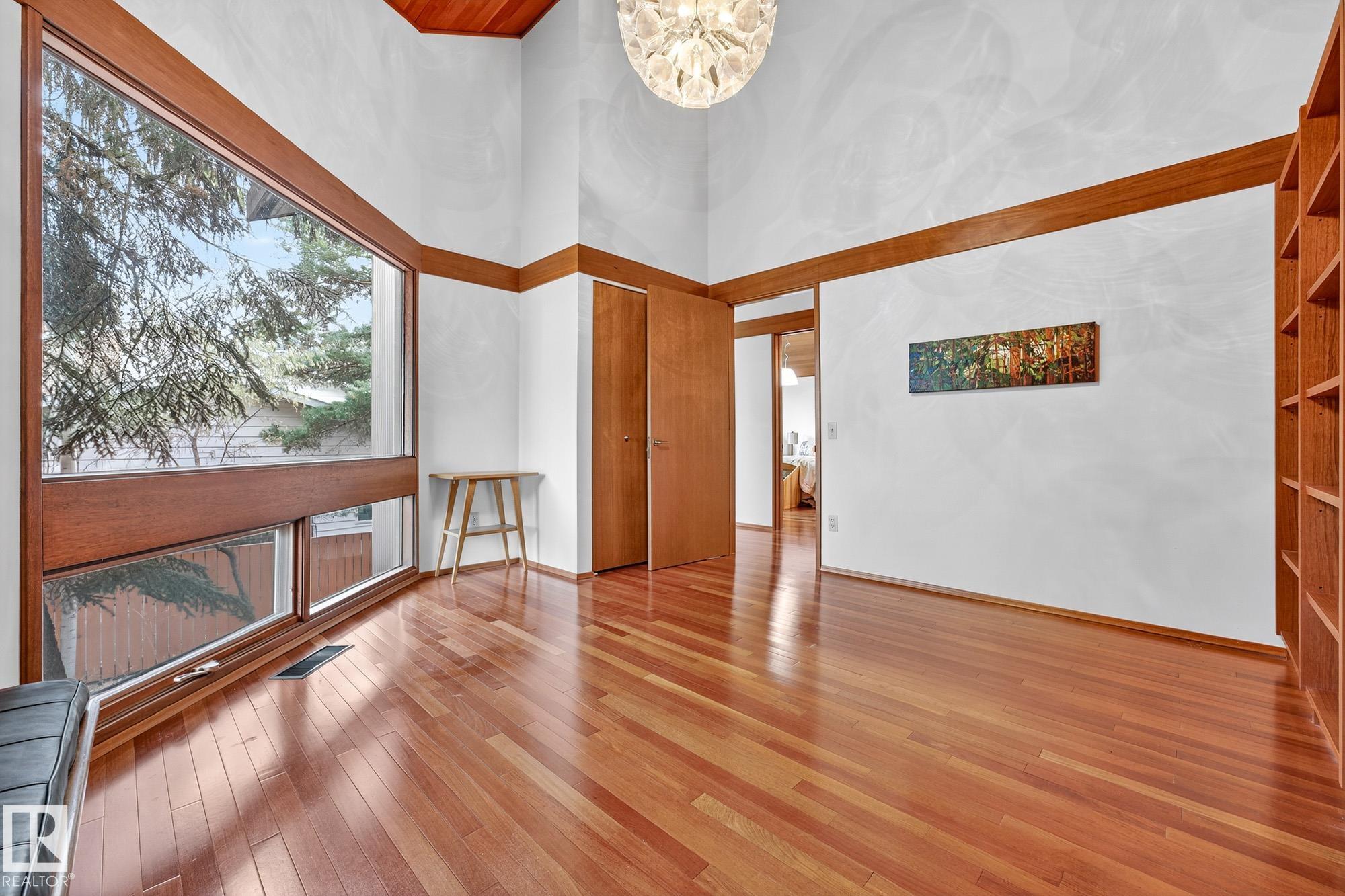 Rare opportunity to own a coveted Brander Drive home on a private ravine facing lot above Fort Edmonton Park. Set on a massive 90' x 120' treed property, this architect-designed 6 bedroom home offers nearly 4,000 sq. ft. of developed space with a warm mid-century modern feel. Floor-to-ceiling windows, rich wood accents, vaulted ceilings & feature brick fireplace create bright, inviting living spaces. Tasteful updates include a renovated main bath with steam shower & heated flooring, Brazilian cherry hardwoo...