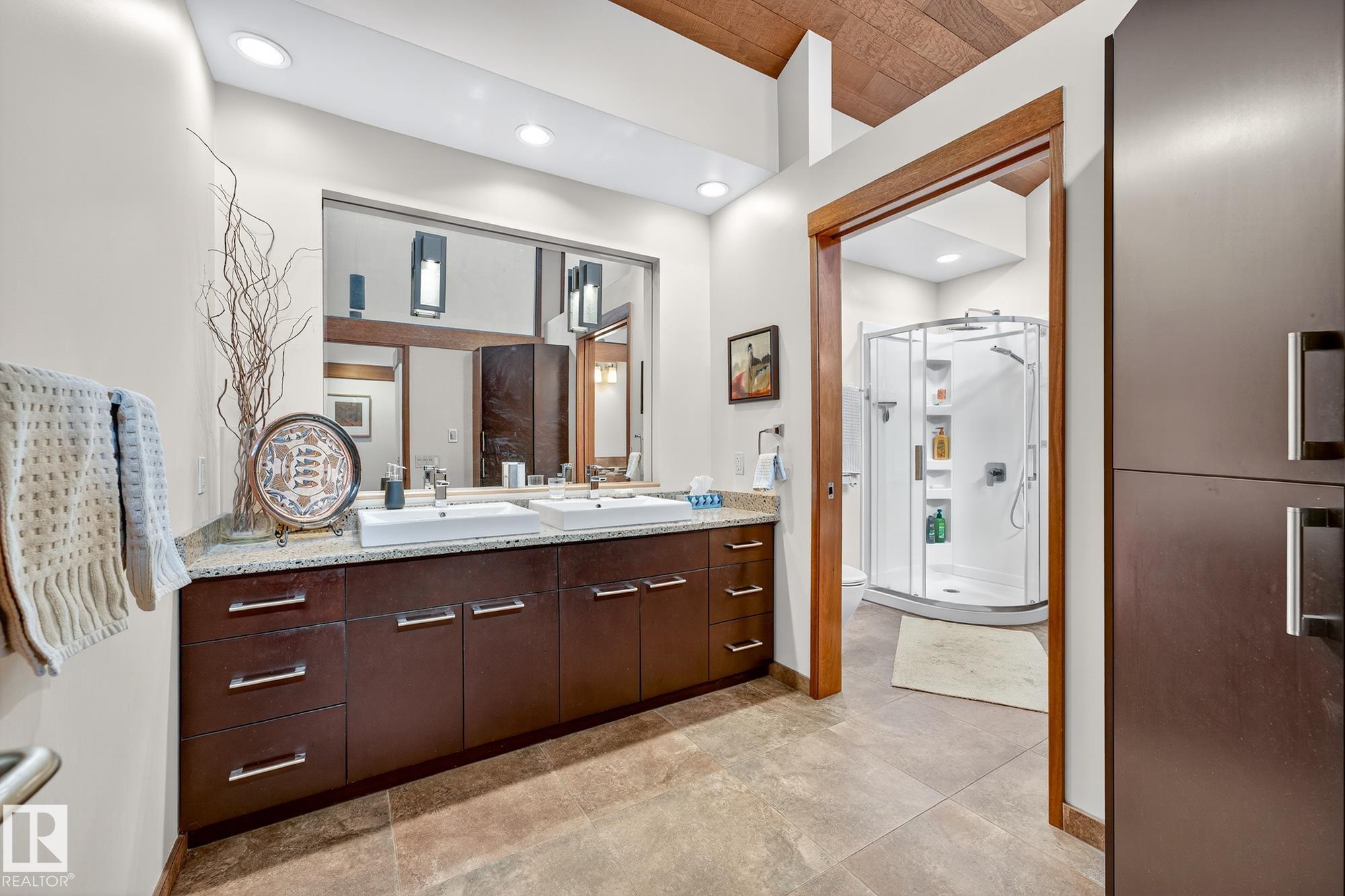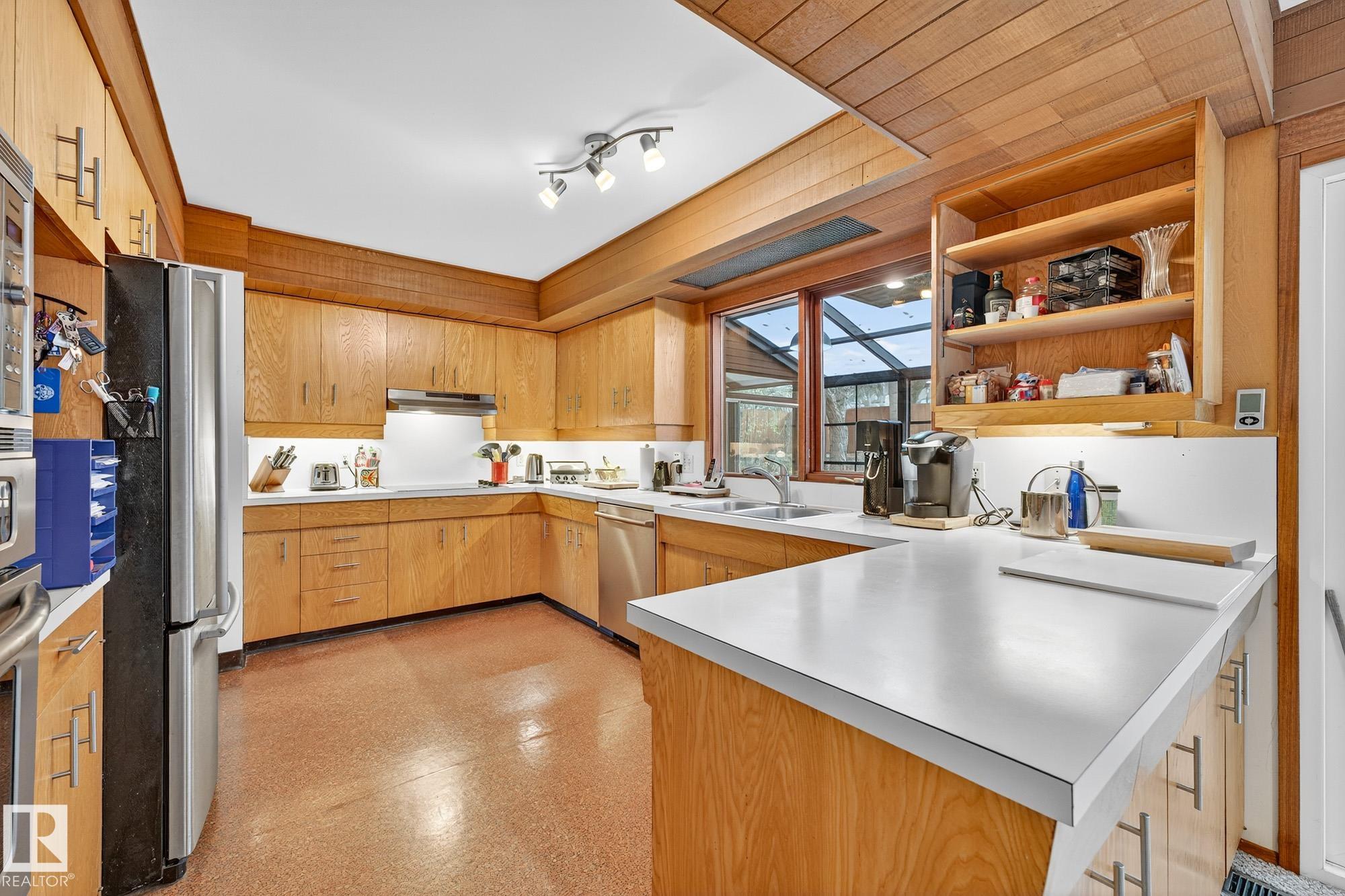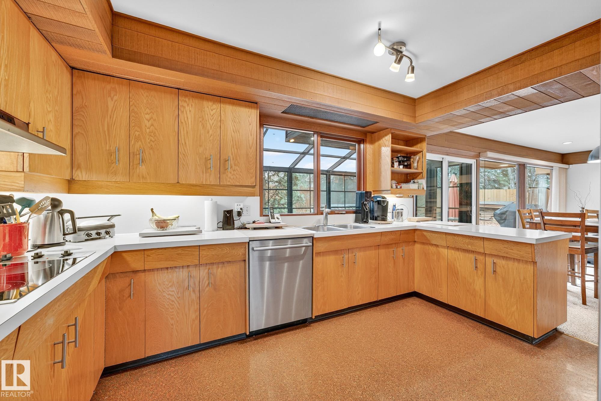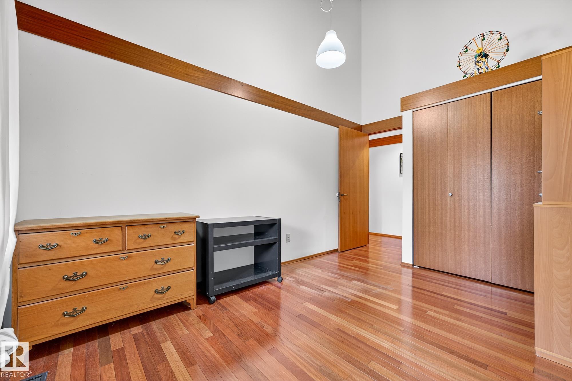 Rare opportunity to own a coveted Brander Drive home on a private ravine facing lot above Fort Edmonton Park. Set on a massive 90' x 120' treed property, this architect-designed 6 bedroom home offers nearly 4,000 sq. ft. of developed space with a warm mid-century modern feel. Floor-to-ceiling windows, rich wood accents, vaulted ceilings & feature brick fireplace create bright, inviting living spaces. Tasteful updates include a renovated main bath with steam shower & heated flooring, Brazilian cherry hardwoo...