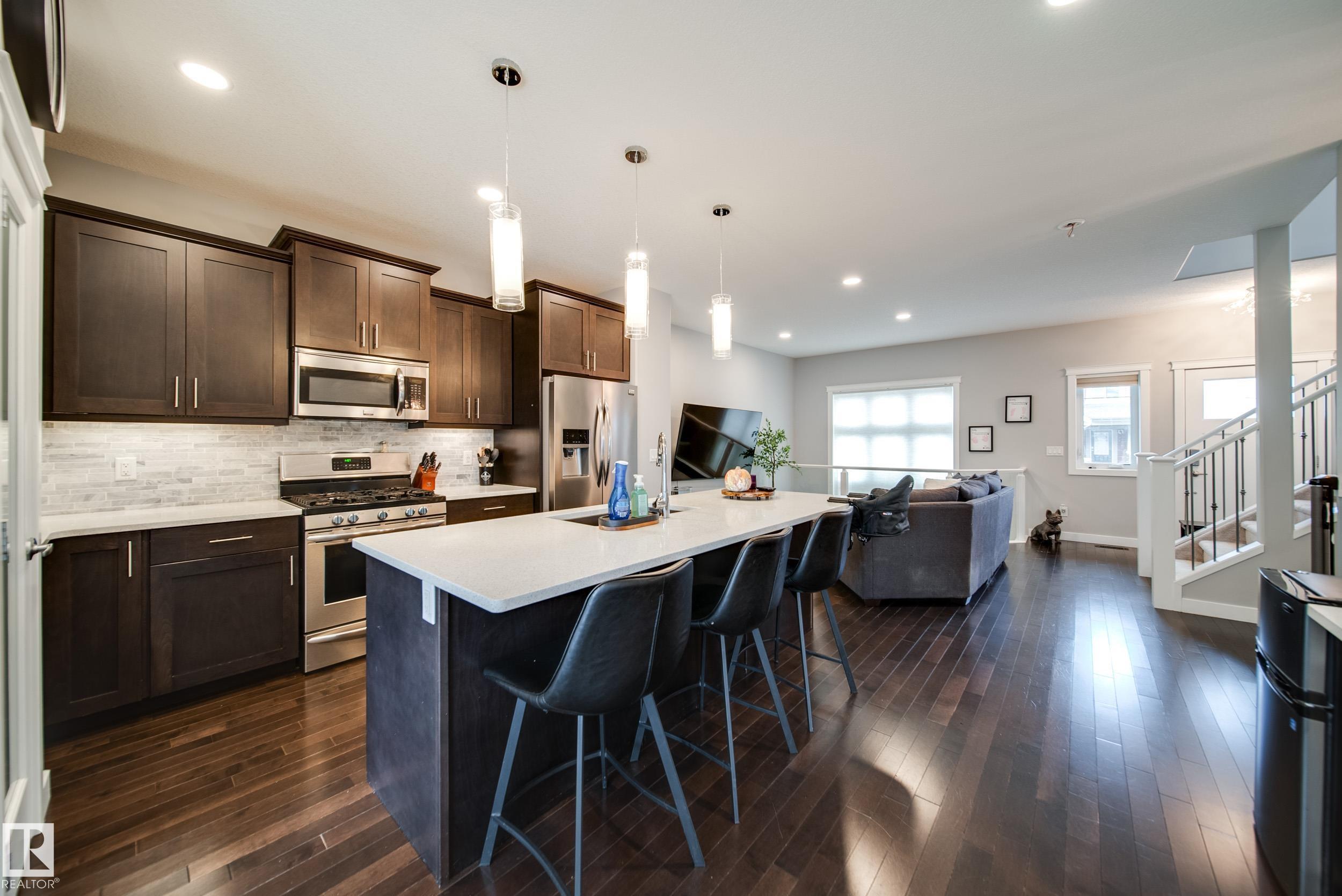 Welcome to this gorgeous WELL MAINTAINED 2-storey home in the vibrant community of Griesbach featuring an INCOME GENERATING 1-bedroom legal garage suite (potential mortgage helper of $1,200+/month)! Located on a LARGE LOT this home offers over 1,900 sqft of total living space, open concept floorpan, 4 bedrooms, 3.5 baths, A/C, and a double detached garage! The bright main floor showcases hardwood floors, an open-to-below design, and a chef’s kitchen with stainless steel appliances (gas stove), quartz counte...