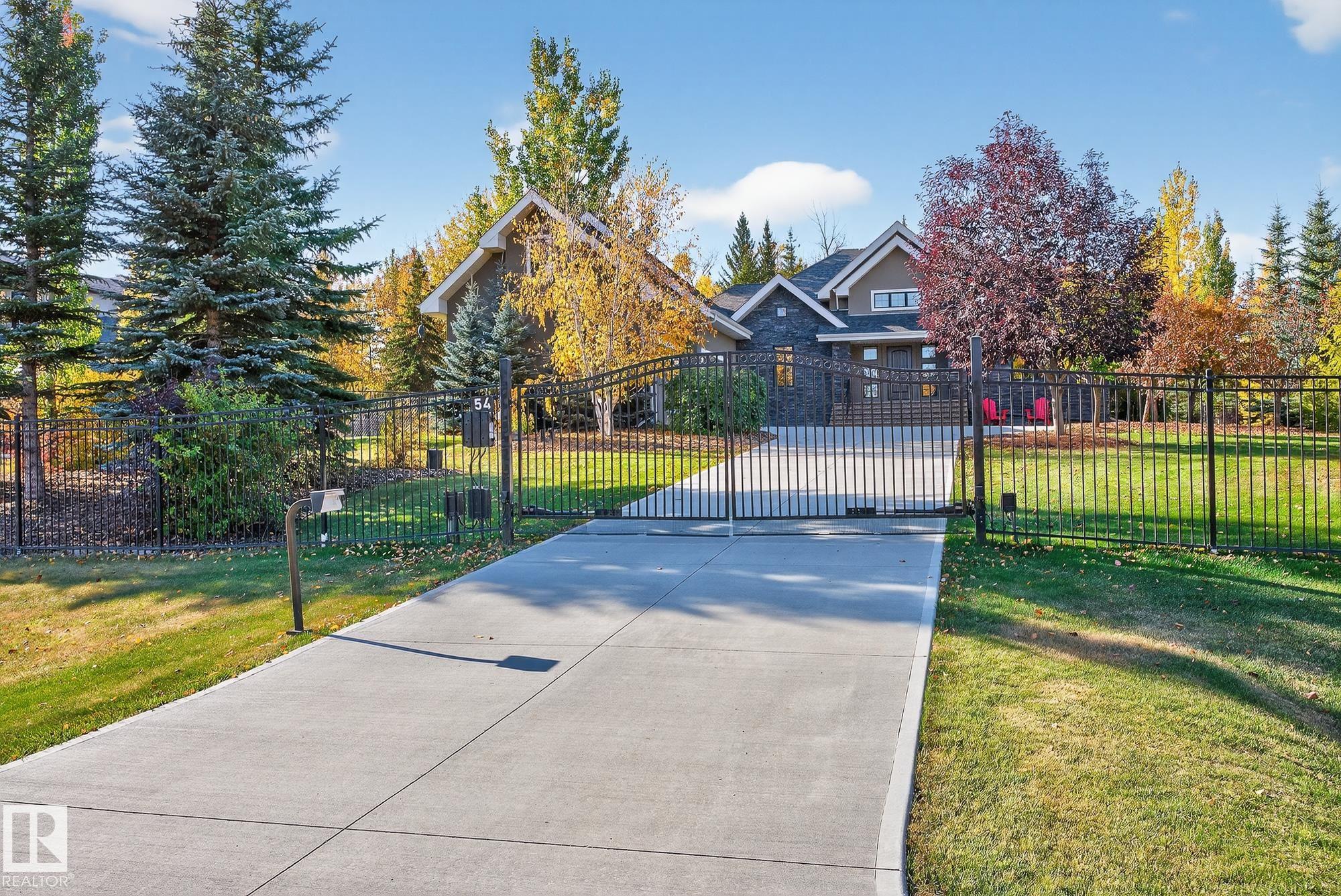 Exceptional custom-built bungalow in prestigious Atim Creek Springs, 20 mins west of Edmonton and 5 mins north of Spruce Grove features a fully landscaped, fenced yard with electric gate offering privacy among mature spruce trees, perennial beds, and underground irrigation. Over 4,600 sq ft of refined living space and oversized triple garage. This home impresses with a grand foyer, soaring 20’ vaulted ceilings, and a striking barrel-vaulted ceiling. Formal dining room with coffered ceilings, a private offic...