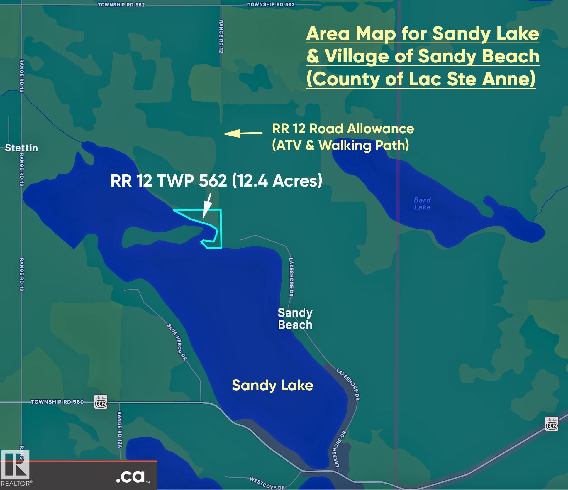 * ENJOY NATURE, PRIVACY, RECREATION, and RELAXATION only 40 MINUTES DRIVE from DOWNTOWN ST. ALBERT!! An incredible development opportunity: 12.4 Acre pastured and treed 'Cape Cod' shaped SOUTH-FACING LAKEFRONT PARCEL on Sandy Beach / Sandy Lake at only $18.5K per Acre! Current access via all-terrain vehicle / walking trail (or by boat) adjacent to RR 12 road allowance -- awaits your future design, development, and service utility connections. Country Residential Ranch (CRR) zoning permits country residence;...